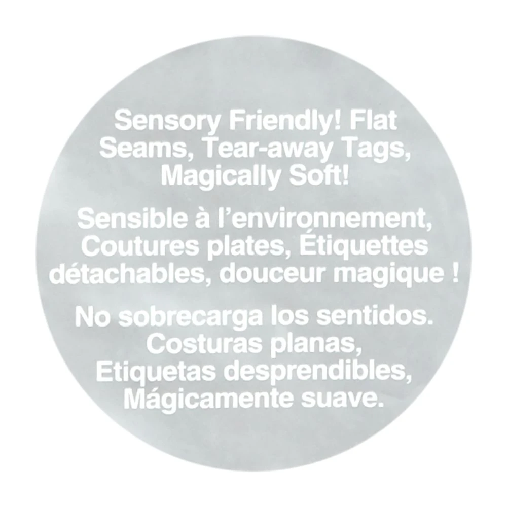 - ”Sensory friendly” product features: tagless, flat seams, wide neckline, soft-to-the-touch material