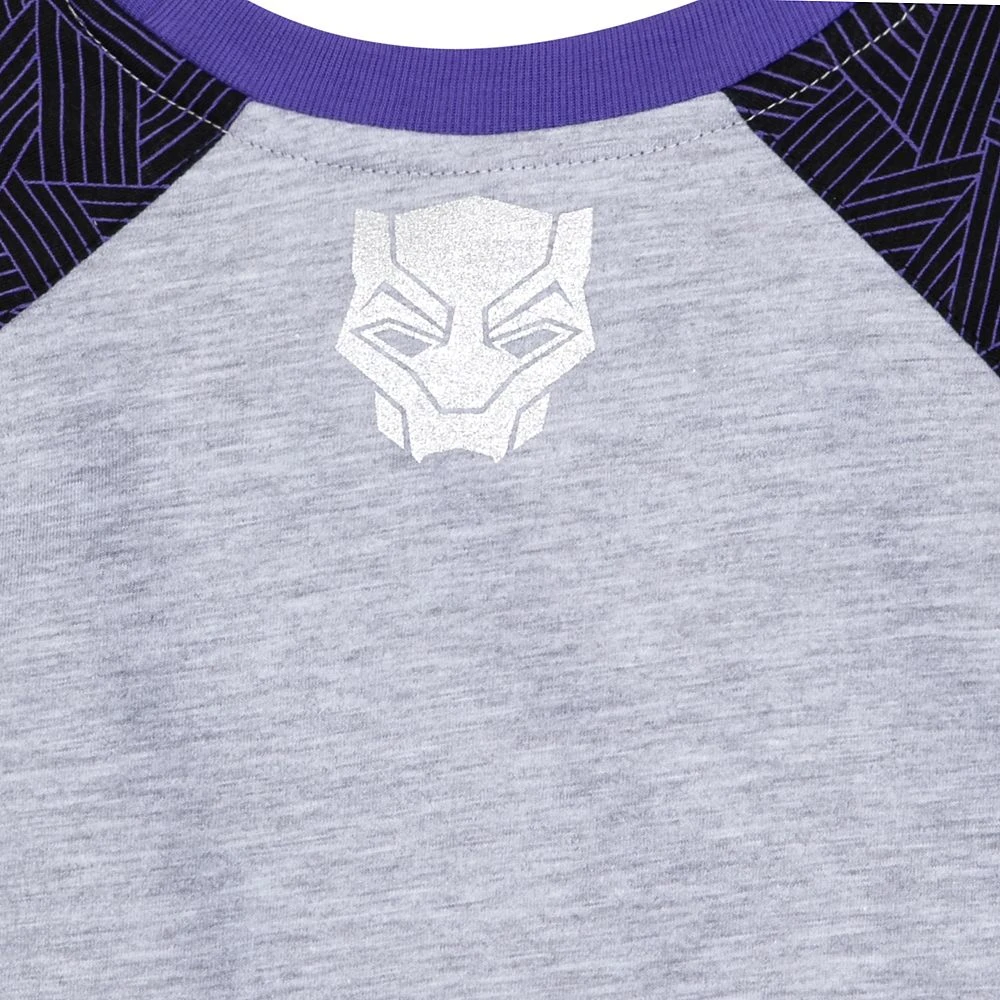 Your child can strike a regal pose in this Black Panther ”Wakanda Forever” raglan T-shirt featuring bold screen art of their favorite super hero and the famous oath written in the Wakandan alphabet. With rich colors and an iconic pattern on the sleeves, this soft heathered jersey tee celebrates a legend with timeless style.Â