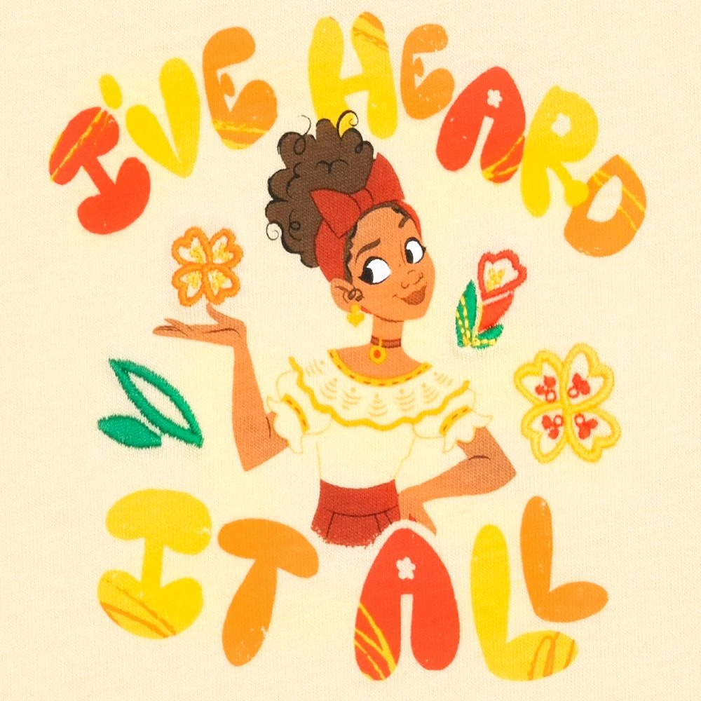 Blessed with a superhuman ear, the musically gifted Dolores proclaims ”I’ve heard it all” on this fashionable tee that’s sure to strike the right note with fans of Disney’s Encanto. The quirky member of the Madrigal family is pictured on the front while her name is featured on the right sleeve along with colorful embroidered flowers.