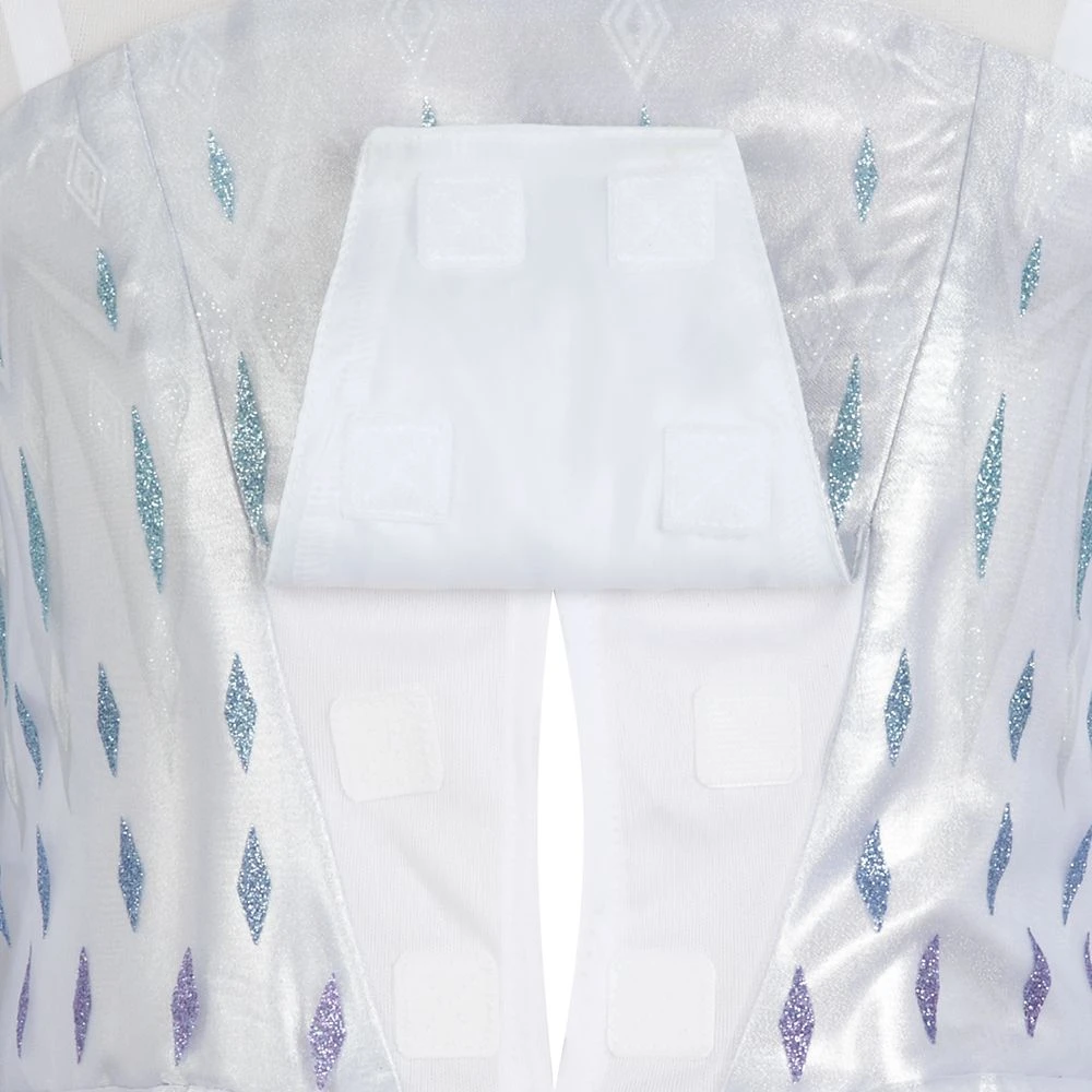 All hail the snow queen in this adaptive Elsa costume, which features openings at the back and a discreet flap in the front center for easy tube access. Let imagination go in our shimmering gown with sheer sleeves and icy, glittering details.