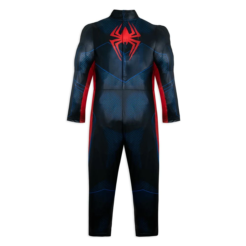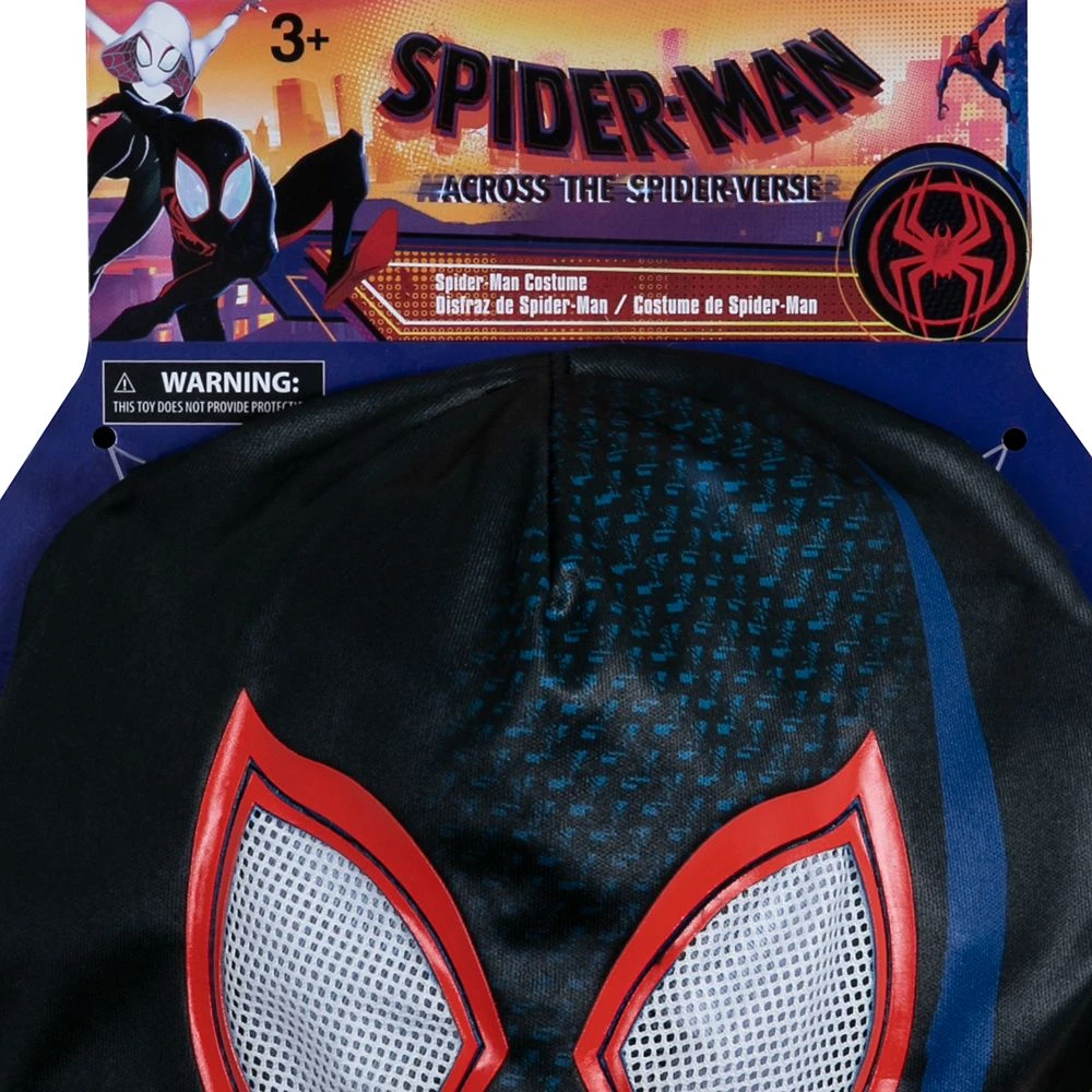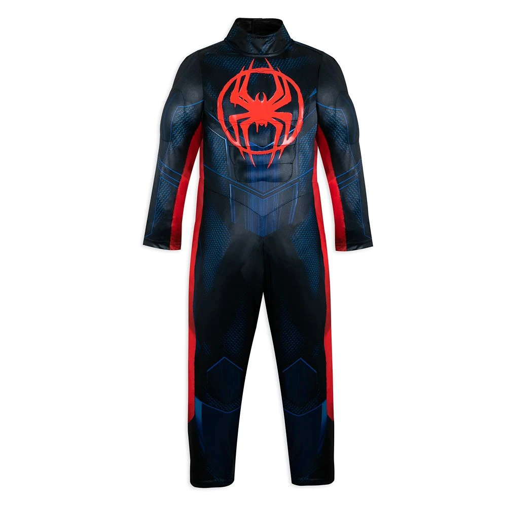 Stylin’ super heroes swing into action wearing this high-tech Spider-Man costume ensemble featuring muscled bodysuit with webbed print, cowl mask, and gloves in the style of Miles Morales, star of Spider-Man: Into the Spider-Verse.