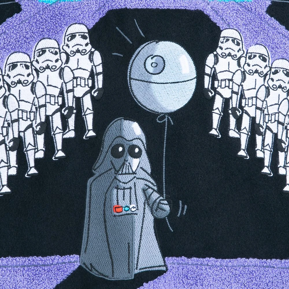 - Embroidered and screen art appliqué Darth Vader, Death Star balloon, Imperial Stormtroopers, Imperial Starcruiser and TIE Fighters on back