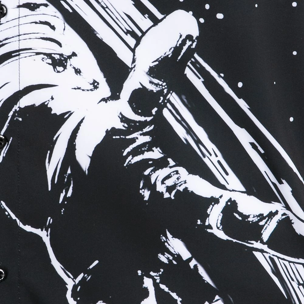 Darth Vader stretches out a hand as he embodies the ”Power of the Dark Side” on this Star Wars shirt by RSVLTS. Made with their signature KUNUFLEX™ four-way stretch fabric, it features a dramatic black and white design with the Dark Lord of the Sith against a starfield background. This striking shirt also features the Star Wars logo and classic details like a full button front, button collar and shirttail hem. Put it on and you’ll be a Force to reckon with.